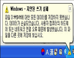 안되어서 데이터복사및 이동이 안되는데 이를 반복적으로 실시하면 특정폴더나 파일이 손상이