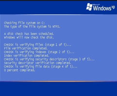 체크디스크 실행화면에서 체크를 100% 진행 했다면 복구가